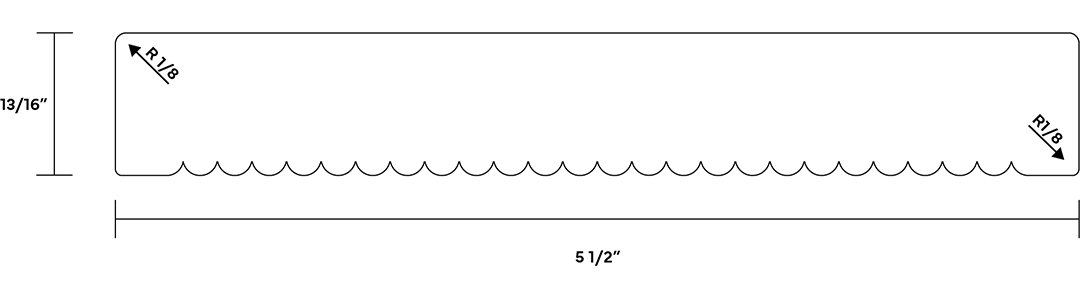 Profile: Smooth topside, 1/8’ inch radius edges, reeded underside